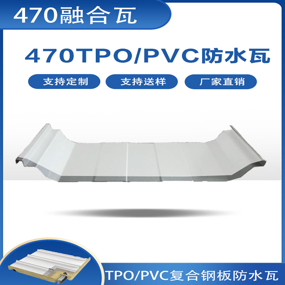 TPO/PVC鋼塑復合防水瓦以鋼板為基板,表面貼覆具有防水防腐功能的TPO/PVC卷材(熱塑性聚烯烴類防水卷材),是一款防水防腐屋面建筑材料。TPO/PVC鋼塑復合防水瓦主要特點就是在各類環境下不易生銹不易漏水,使用熱風焊接進行相連,覆蓋全部裸露的縫隙,在使用過程中可以達到蓄水不滲透的效果,防水效果好,同時還有較好的抗風揭性能和耐老化性