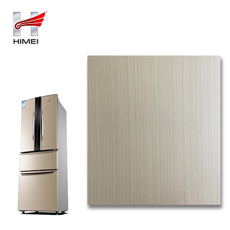 家電用覆膜鋼板,就是鋼板的基材上面覆了一層PET膜/PVC膜,然后通過覆合貼覆而成,主要應用在各類家電外殼裝飾上,例如冰箱、洗衣機、電飯煲等外殼部件。覆膜是一種物理工藝,一層膜一層鋼板經過高溫高壓壓合而成。