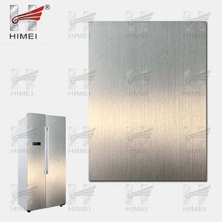 家電用覆膜鋼板,就是鋼板的基材上面覆了一層PET膜/PVC膜,然后通過覆合貼覆而成,主要應用在各類家電外殼裝飾上,例如冰箱、洗衣機、電飯煲等外殼部件。覆膜是一種物理工藝,一層膜一層鋼板經過高溫高壓壓合而成。