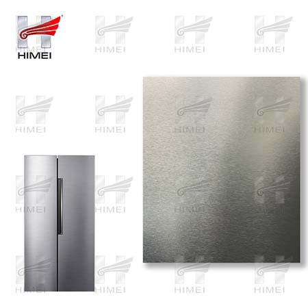 家電用覆膜鋼板,就是鋼板的基材上面覆了一層PET膜/PVC膜,然后通過覆合貼覆而成,主要應用在各類家電外殼裝飾上,例如冰箱、洗衣機、電飯煲等外殼部件。覆膜是一種物理工藝,一層膜一層鋼板經過高溫高壓壓合而成。