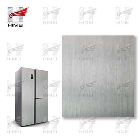 家電用覆膜鋼板,就是鋼板的基材上面覆了一層PET膜/PVC膜,然后通過覆合貼覆而成,主要應用在各類家電外殼裝飾上,例如冰箱、洗衣機、電飯煲等外殼部件。覆膜是一種物理工藝,一層膜一層鋼板經過高溫高壓壓合而成。